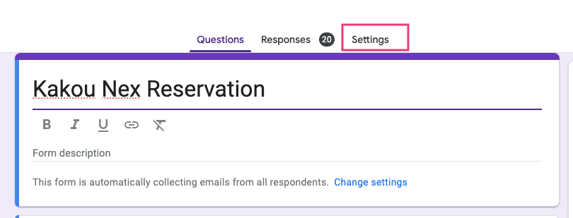 - Go to Google Form’s Settings Tab: Click the gear icon at the top-right corner of the form.