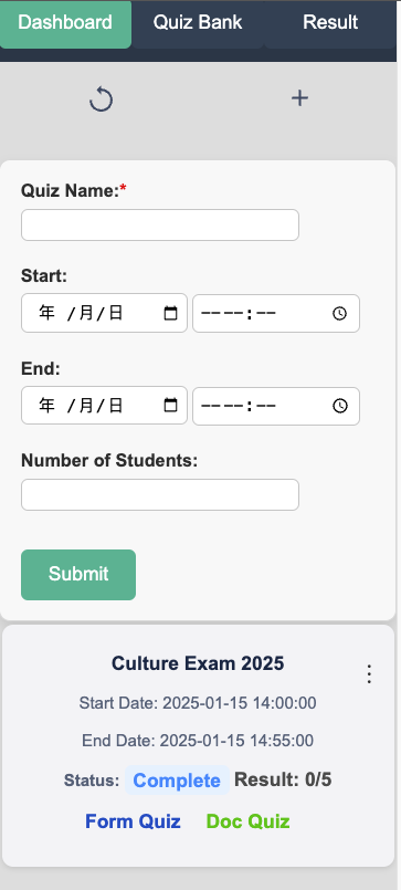 - Monitor quiz progress and completion statuses instantly. See response counts and results directly from the dashboard.
