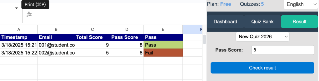 - Provide a passing score to quickly check the score result of participants